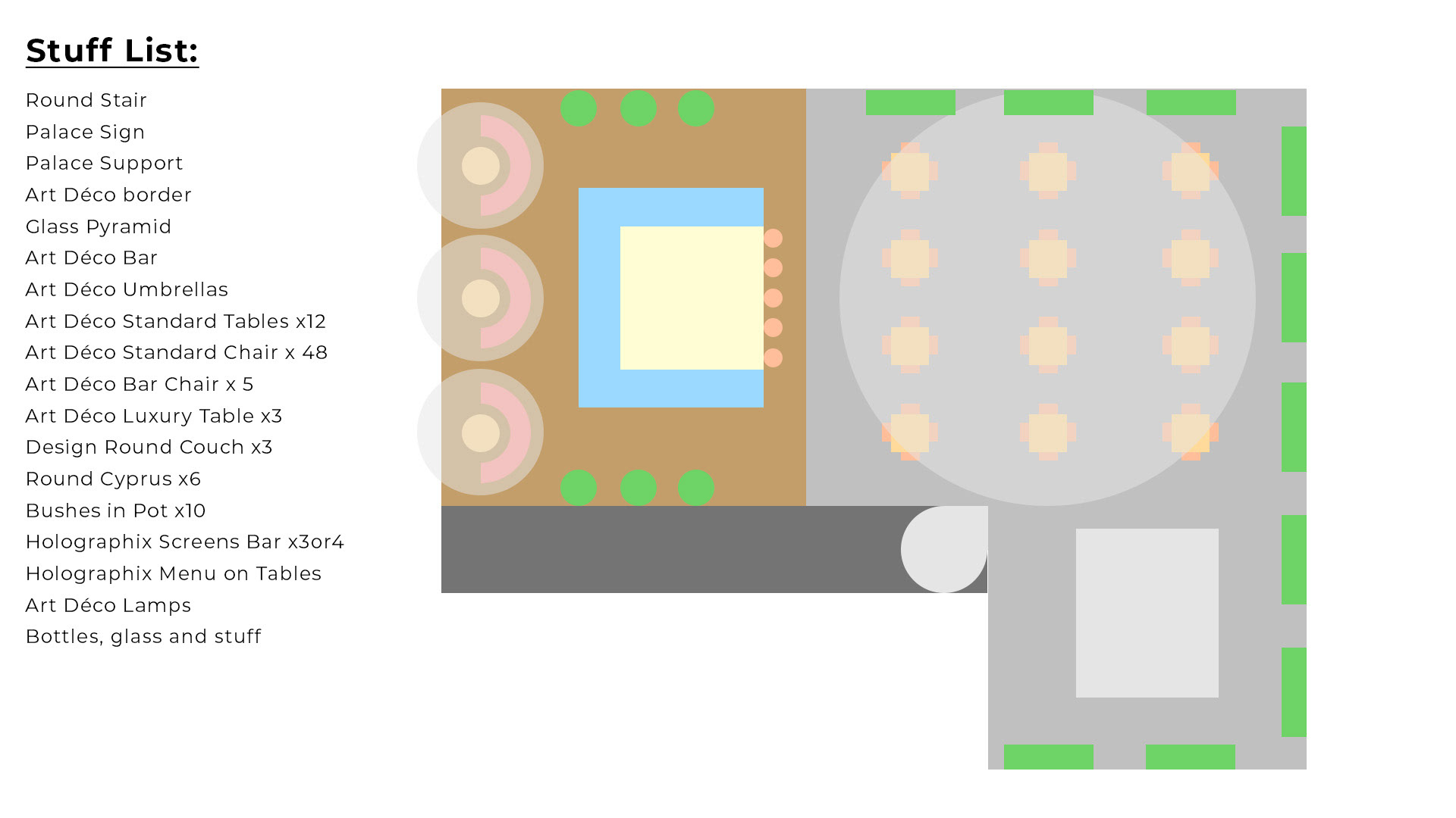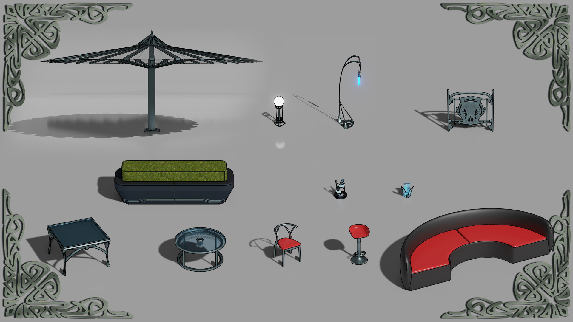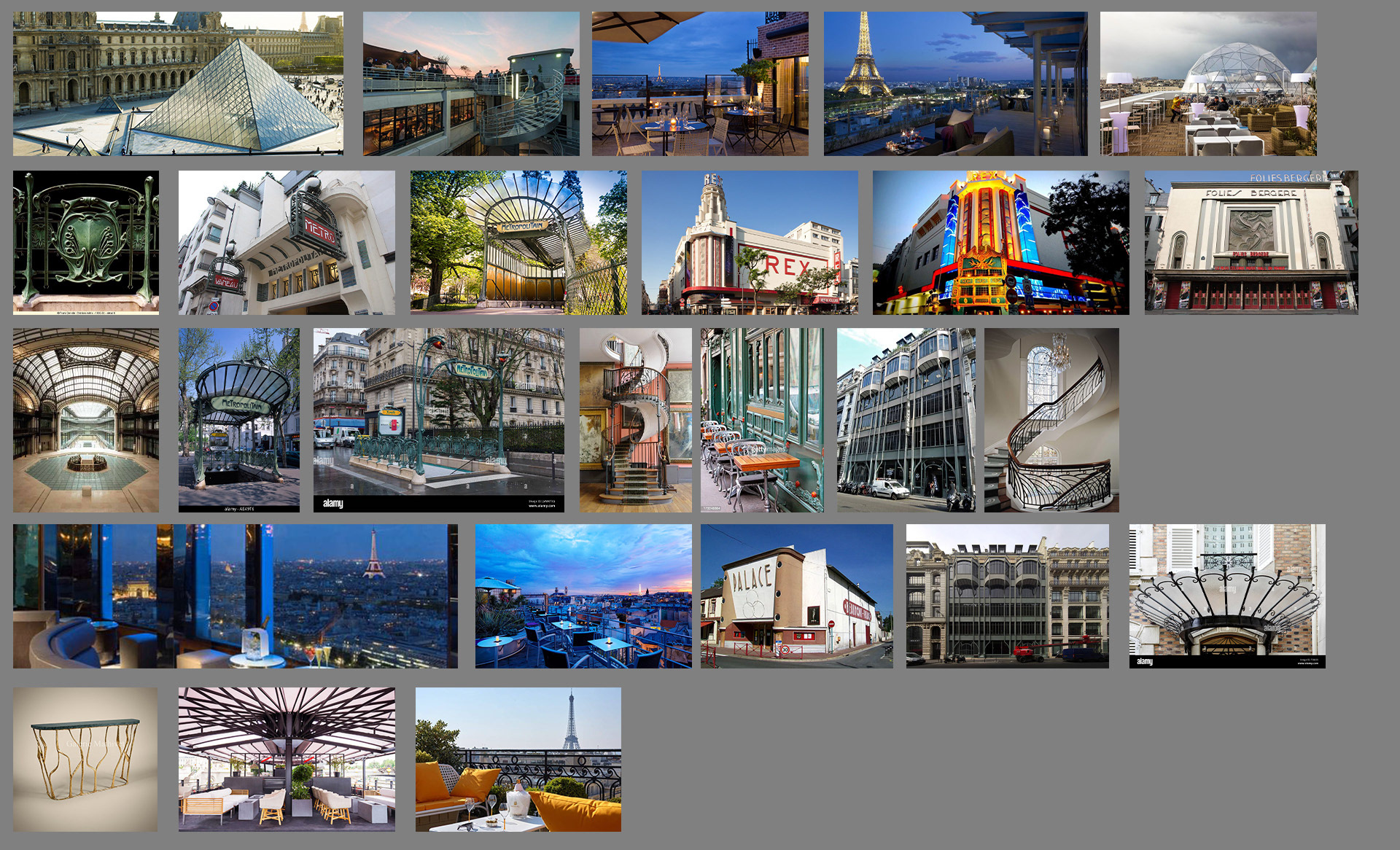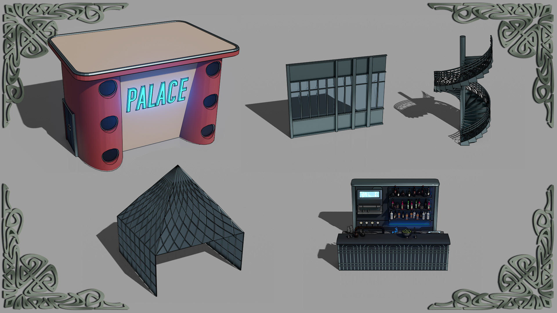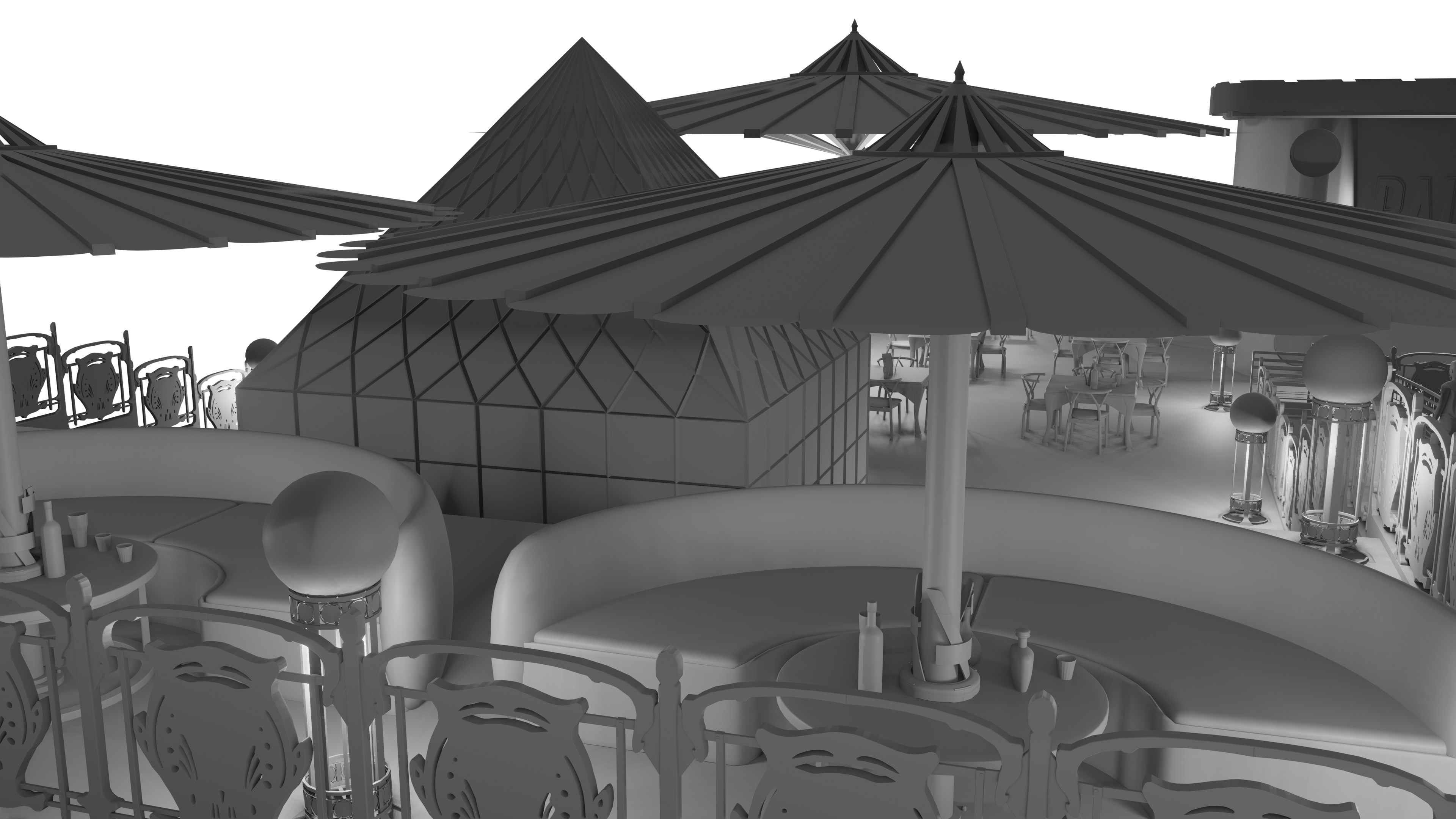 Here is the result from a workshop demo made for my second year game art bachelor mostly. Subject is to make a rooftop design for a slightly futuristic bar for several locations, potentially for a kind of game hub for a fictive project. Obviously my example takes place in Paris with some kind of Art Nouveau overall look. Process is to design props first, modeling them in Blender roughly, generate a greybox render and a freestyle pass to extract a basic line. Then go into Photoshop to composite and refine the line, and make another pass of indirect color, photobashing and stuff.